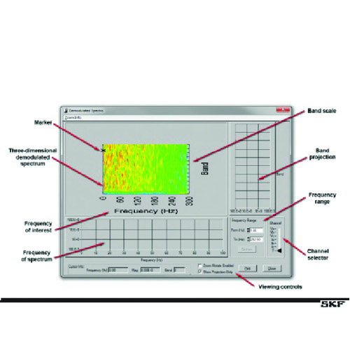 Available with the purchase of the T4000 Torque analysis software option, the Demodulated spectrum feature calculates the three-dimensional demodulated spectrum of the torque signature. With the channel control, this signal can be changed from torque to current or voltage of any one of the phases. The demodulated spectra tool analyzes the dynamic behavior profile of the motor load system.