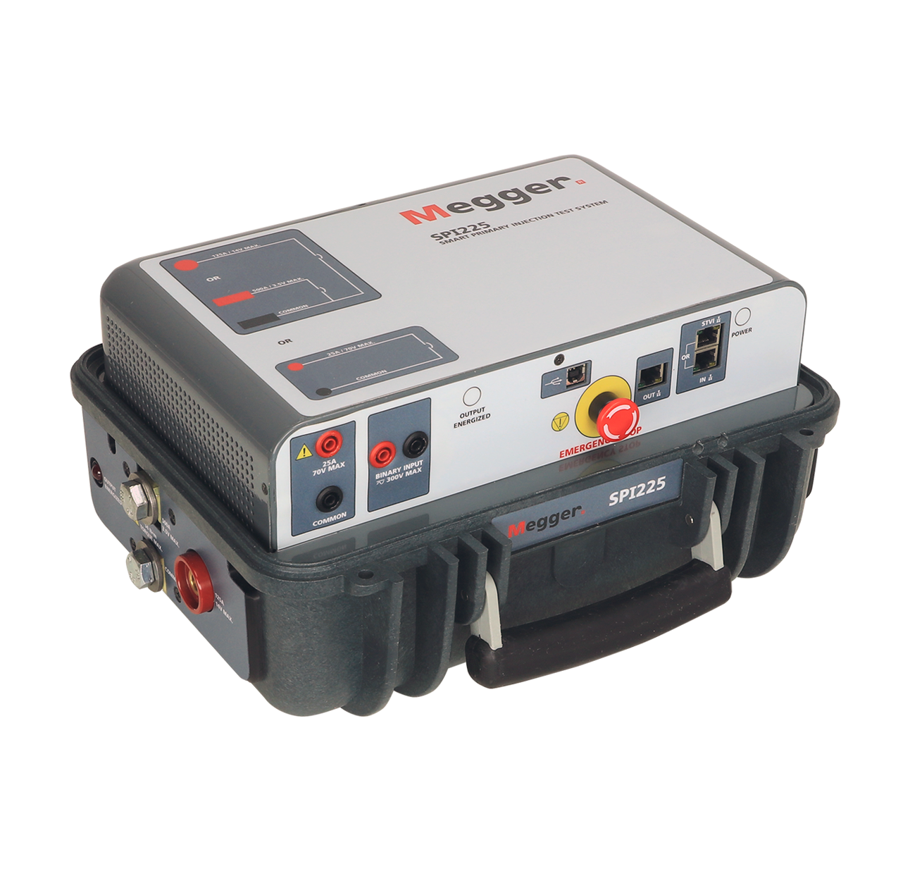 SPI225 is a high current primary injection test system for all forms of high current testing required in a substation, including testing overcurrent relays, circuit breakers, motor overloads and current transformers.SPI system is the FIRST high current test systems to permit a user to type in a predetermined current and the SPI system will generate and regulate the requested high current without preheating the test sample by pulsing the output current at high currents. The SPI system also has the unique ability to turn on at the current zero crossing every time for any load by automatically adjust the output firing angle. This eliminates DC offset for every circuit breaker type and the need for the user to determine and adjust the firing angle for different loads and circuit breakers.